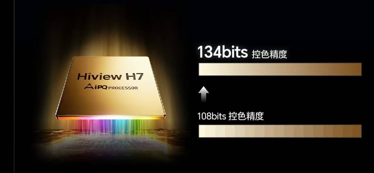 其次,光色同控芯片的升级则为画质提升提供了核心算力支撑。海信自研的信芯AI画质芯片H7,实现134bits超高控色精度,通过先进的混光运算算法,可对每一颗Mini LED芯片进行独立精准控制,使画面的明暗层次、色彩渐变如自然光影般流畅细腻。无论是夕阳余晖的金边质感,还是夜景画面的暗场发丝纹理,都能纤毫毕现地呈现。