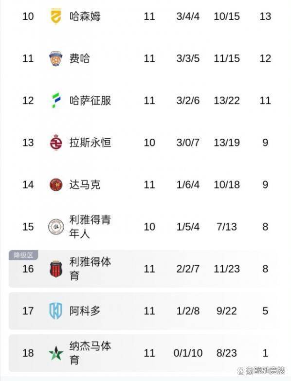 降级区附近也挺热闹。 第十五名吉达青年和第十六名利雅得同积8分,保级压力一点儿不小。 整个积分榜从中游开始,各队分差很小,输赢一场排名就可能大变样。